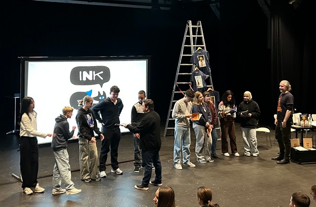 251008. Am 07.10. nahm die Klasse 9b im Rahmen des Deutschunterrichts mit Frau Sohns an der ersten Veranstaltung des Ink Awards teil. Der Ink Award ist ein Projekt des Euregio Kulturvereins, an dem Mittelstufenschüler*innen aus Deutschland, Belgien und den Niederlanden teilnehmen. Die Schüler*innen lesen 3 ausgewählte Graphic Novels, setzen sich im Unterricht damit auseinander und lernen die Autor*innen bzw. Künstler*innen bei gemeinsamen Workshops kennen. Zum Abschluss des Projektes entscheiden die Schüler*innen bei einem Jurytag, welche Graphic Novel sie mit dem Ink Award auszeichnen wollen und überreichen diesen.
