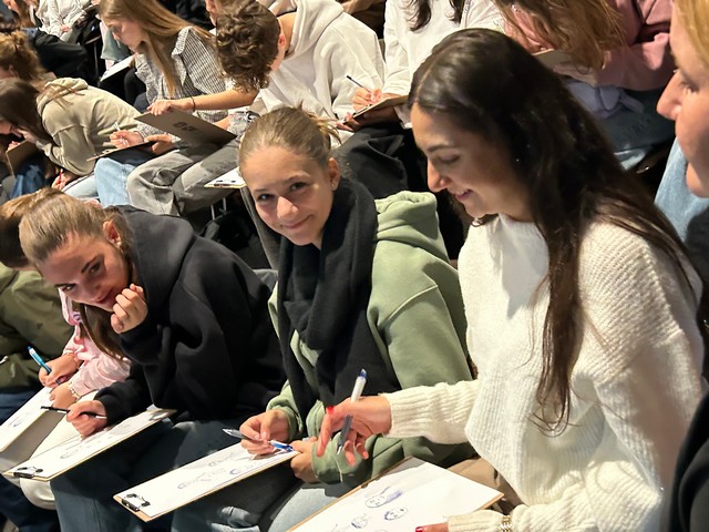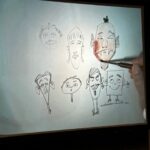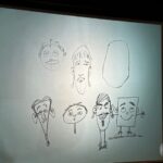 Weiter ging es mit einem kurzen Workshop, in dem der Illustrator Jörg Hartmann die Schüler*innen dazu anleitete, Köpfe für eigene Comiccharaktere zu entwerfen und ein paar Zeichentipps gab.