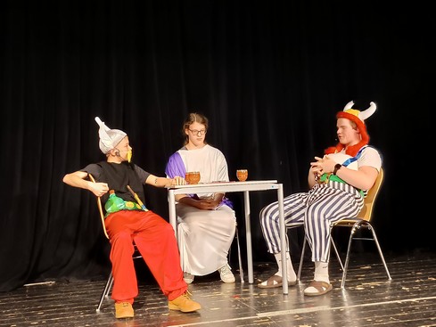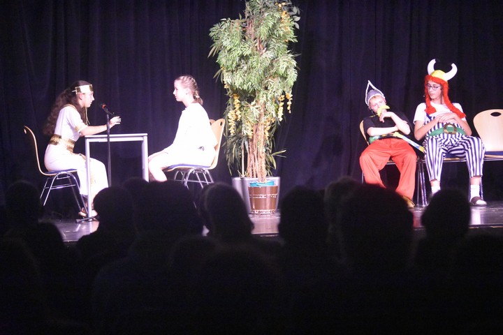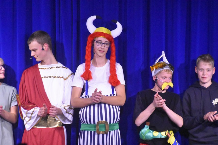 Die Idee hinter dem Projekt war es, den humorvollen Charme von Asterix auf die Bühne zu bringen, und das Ergebnis konnte sich sehen lassen: In kurzweiligen Szenen rund um die Reise nach Rom, die von den tapferen Galliern Asterix, Obelix und ihren Wegbegleitern handelten, überzeugten die jungen Schauspieler dabei nicht nur mit komischen Dialogen, sondern auch mit witzigen Aktionen, die die Zuschauer immer wieder zum Schmunzeln brachten.