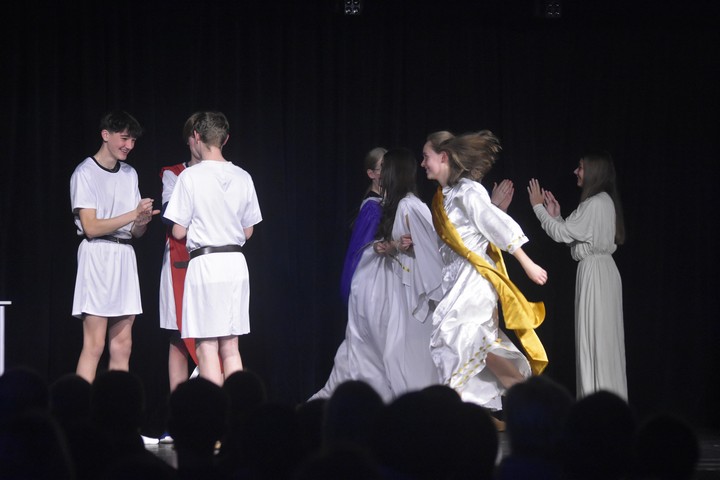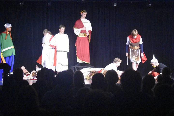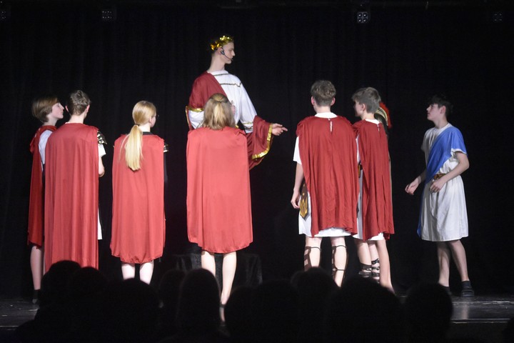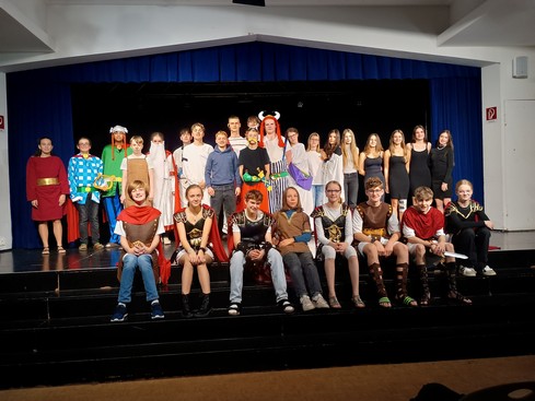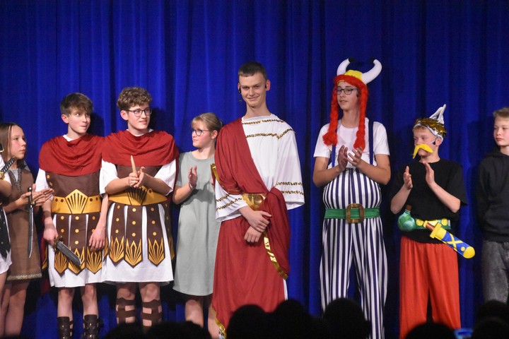 251121. Am 19. und 20. November 2025 präsentierte der Lateinkurs der Stufe 9 von Frau Peters in der Aula eine Theateraufführung der besonderen Art. Inspiriert von dem beliebten Zeichentrickfilm „Asterix erobert Rom“, haben die Schüler ein eigenes, kreatives Stück aus mehreren, witzigen Episoden entwickelt, das nicht nur die Fantasie beflügelte, sondern auch das Publikum mit viel Humor und Spielfreude begeisterte.