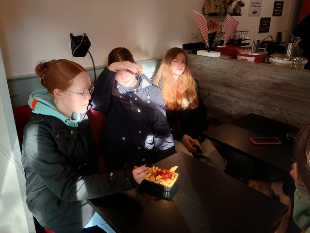 In der Mittagspause gab es dann natürlich Spezialitäten aus der Fritüre, bevor die Schülerinnen und Schüler in kleinen Gruppen ausschwärmten, um Weihnachtseinkäufe zu erledigen.