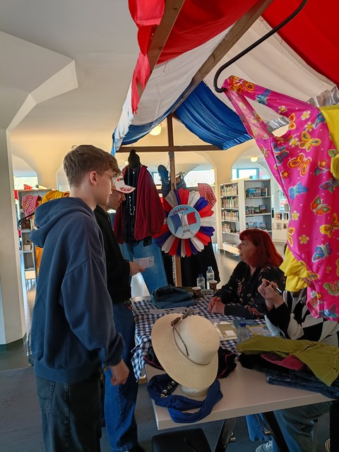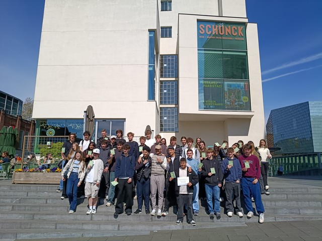 Am 14.04.2026 fuhren wir – diesmal komfortabel im Reisebus – zum Schunck-Glaspaleis, wo wir am ersten Tag das Taaldorp als Sprachfreiwillige unterstützten. Wir teilten uns auf die verschiedenen Stationen auf und sprachen Deutsch mit den niederländischen Schülern, die das Taaldorp besuchten.